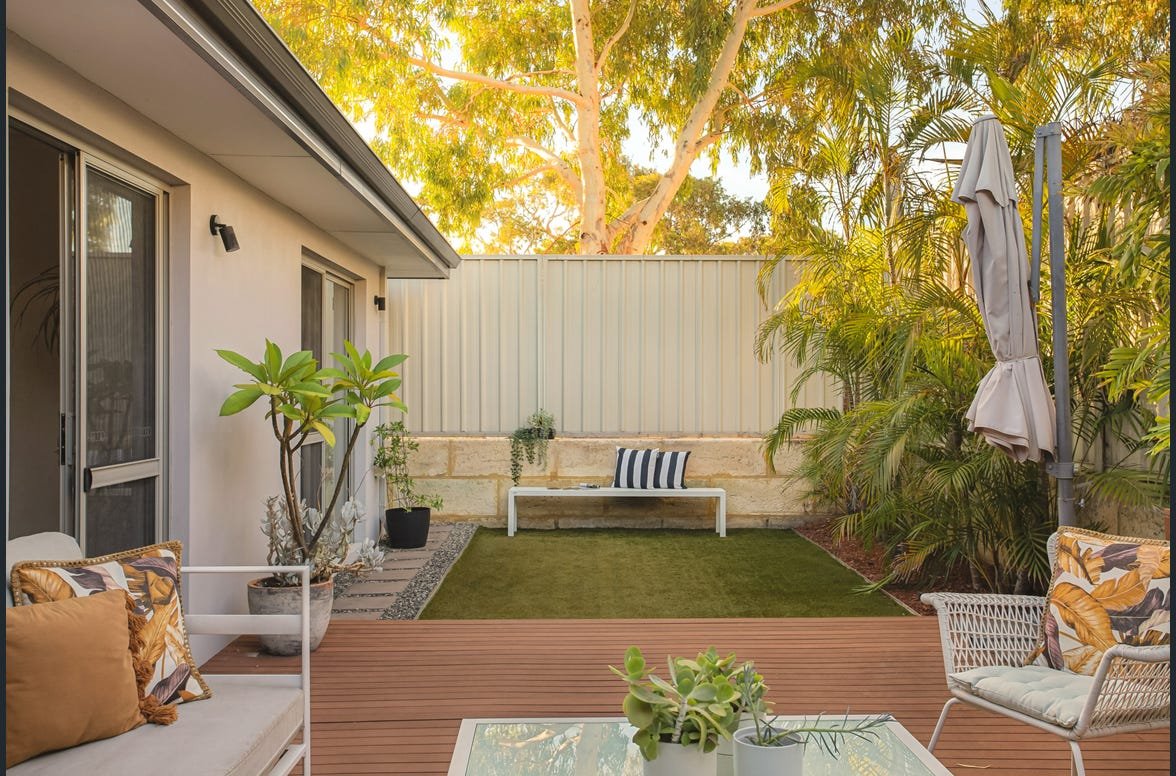 High ceilings throughout further enhance the sense of space, while the home flows effortlessly out to a private courtyard where mature neighbouring trees create a peacetul natural backdrop.